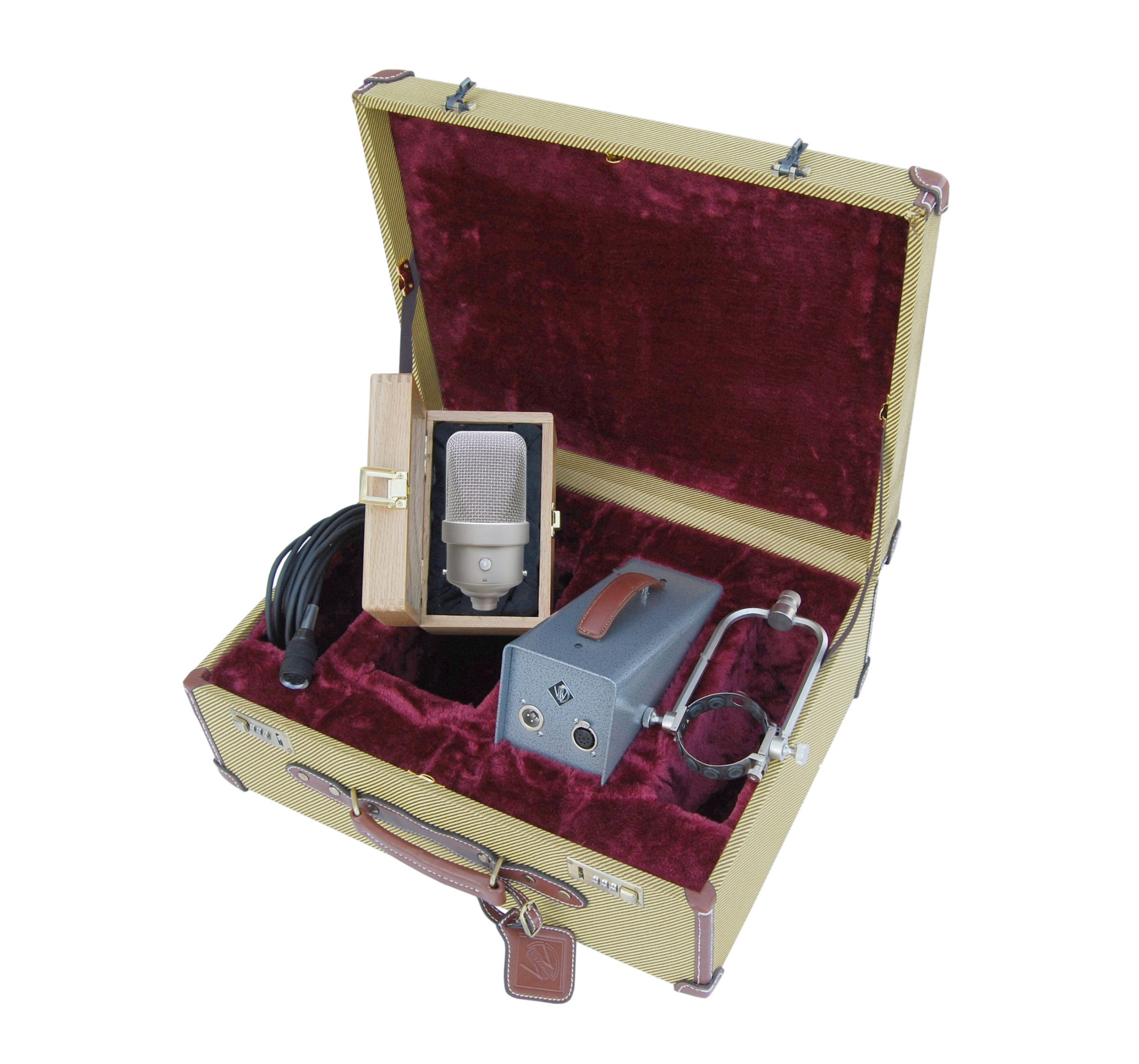 Your Wunder Audio CM50 S is nestled in velvet and softly secured in place in a foam-lined quarter sawn oak box that is clasped and hinged. This box then is safely encased in a precision velvet-lined thick foam tweed case that also holds your PSU, your one-piece newly designed yoke mount, and your cables.